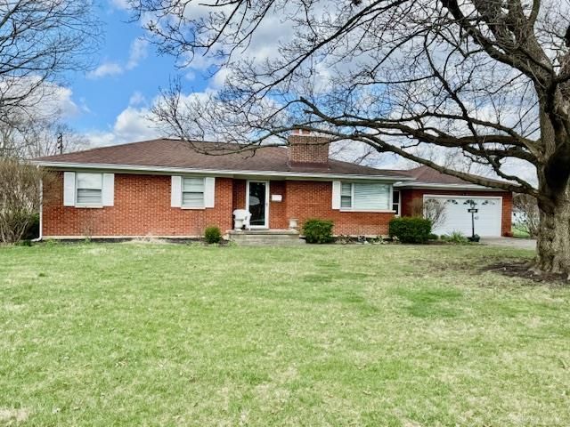 Welcome to Enon’s “Indian Mound Estates” a residential community providing a lush rural setting centered around the “Adena Mound” a national historic site. This solid brick ranch rests on a nearly half acre setting & offers a long list of updates to include dimensional roofing, upgraded HVAC systems, electrical panel, glass block basement windows & a newer overhead garage door. Step inside to discover natural wood floors, coved archways, a romantic fireplace and a layout designed for living. Plants and people will love the natural light found in the living room via 2 oversized picture windows. Features repeat in the galley kitchen equip w/white wood cabinets, canned lighting, a full appliance package and adjacent eat in space w/chandelier lighting for everyday meals, coffee or conversation while cooking. The central hall sports convenient attic access, bonus built in storage and access to the homes 3 bedrooms. A special bedroom feature is the built-in desk and full wall of book shelving perfect for a nursery or home office. What’s more? A creative pass-through wardrobe connects bedrooms 1 and 2 increasing the flexibility. Spa like vibes compliment the recently renovated bath offering premium finishes to include ceramic floors, subway tiled accents, an individual bath tub and free-standing shower with glass panel wall, bench seating, mobility assist features and designer patterned tile. Additional living space continues in the full basement with a finished office/playroom plus unfinished areas planned for a home gym, recreation space and bonus storage. Welcome warmer months w/the enclosed breezeway offering convenient access to the garage as well as both the front and back yards—perfect for enjoying the nearly half-acre lot with mature trees. A section of the back yard has been fenced offering a safe haven for little ones and pets at play. Premium parking exists in the extensive driveway and attached garage w/opener. Correctly priced and ready for your admiration.