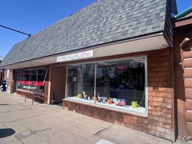 Presently a seasonal Retail Store, this Building is available as Real Estate only or w/Inventory Sold Separately. 1680 SqFt, remodeled since 2016 w/new Electrical Mast, LED lighting & 2021 Roof. Currently divided with removable non-load bearing walls & expandable with unused back-room space. Many Usage Possibilities include Office Space, Retail, Deli/Pizza Store, Mini-Mart/Party Store, Pet Grooming & more! On-Street parking with wide Sidewalks for outdoor displays & High Visibility for Signage. Located between Gaylord & Alpena on busy thoroughfare M-32, near intersection of M-33. This is a resort community that offers Camping/Fishing/Boating & Hunting, aka Elk Capital of the World, w/annual festivals, parades & Buck Pole. Adjacent square footage possible. Inventory value apx $10k.