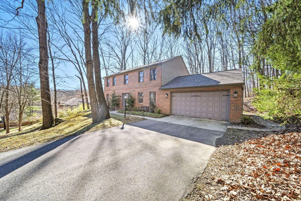 OFFER DEADLINE: SATURDAY 3/14 at 6:00 PM. Private hilltop setting in Stratford Woods- where homes rarely come on the market. This brick Colonial sits on nearly ¾ acre with mature trees and no HOA fees. Extensive updates throughout the home. New roof, gutters, and skylight (2025). Complete kitchen remodel featuring KitchenAid appliances, quartz countertops, custom island and opened the wall for improved layout. Luxury vinyl plank flooring throughout.All bathrooms updated with new sinks, fixtures, luxury vinyl tile and plank flooring. Interior improvements include new lighting inside and out, added wood texture and molding details, fresh paint throughout (including doors, railings, and trim), and new hardware on all interior and exterior doors.Additional updates include new garage door opener and freshly painted garage door with new hardware. Private outdoor living with paver walkway, patio, and re-stained two-tier deck. Furnace and A/C approximately 5 years old. Home also includes a radon mitigation system.Located near bike and walking trails! Enjoy the privacy of a wooded setting while remaining close to Granville and OSU Newark.