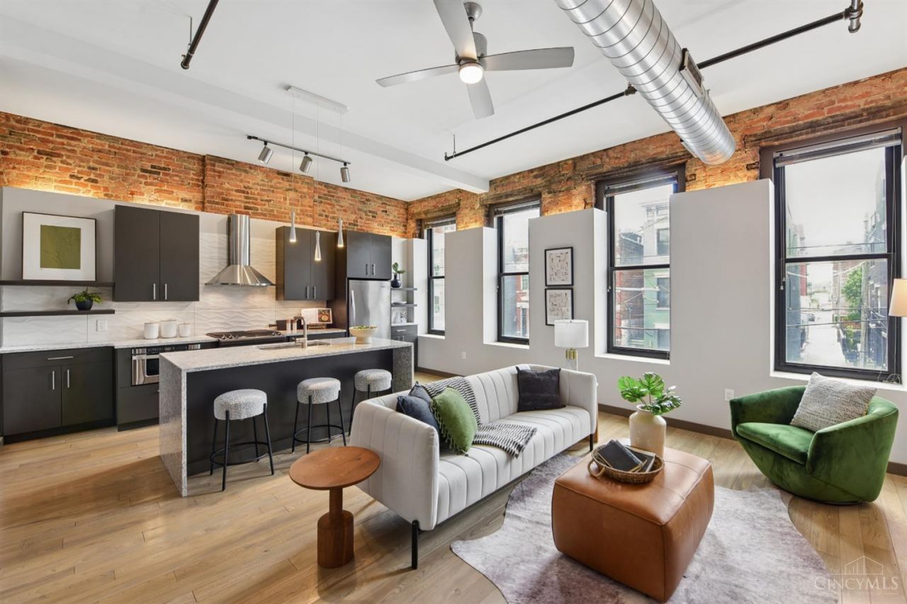 Stunning Condo in the Heart of OTR! Just steps from Washington Park, Music Hall, and FC Cincinnati's TQL Stadium, this 2-bedroom, 1-bath gem offers the ultimate urban lifestyle. With soaring 11-foot ceilings, hardwood floors, and oversized windows, natural light floods the open living space. The sleek, modern kitchen features quartz countertops, a waterfall island, and stainless steel appliances - perfect for entertaining or everyday living. Additional storage is located in the basement. Garage parking in Washington Park if desired. Don't miss this premier OTR location where the best of the city is right outside your door!