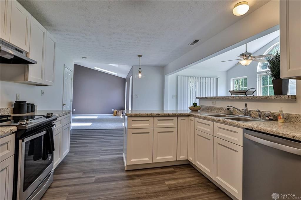 Feels Like a Brand New Home Inside! Step inside this beautifully updated 3 bedroom, 2.5 bath home and immediately notice the bright, open feel buyers love. Located in an established Kettering neighborhood where homes rarely become available, this property offers the charm of the area with the fresh feel of a much newer home.The impressive great room features cathedral ceilings, skylights, and large windows that fill the space with natural light, creating an open, welcoming atmosphere.The kitchen has been refreshed with brand new white soft close cabinetry, pantry space, and stainless steel appliances that will stay with the home. It flows into the morning room/breakfast room and dining area, creating a comfortable layout for everyday living and entertaining.Extensive updates include all new flooring and baseboards throughout the home. Upstairs you will find three comfortable bedrooms including a private primary suite with a full bathroom, walk-in closet, and ceiling fan.A bright morning room/breakfast room with cathedral ceilings and a ceiling fan provides access to the rear patio and adds additional living space.The home is conveniently located near Kettering Health and Miami Valley Hospital, the University of Dayton (Go Flyers), Sinclair Community College, shopping, and lots of dining choices.Homes in this neighborhood rarely come on the market, making this a fantastic opportunity for buyers looking for a move-in ready home that feels like new inside.