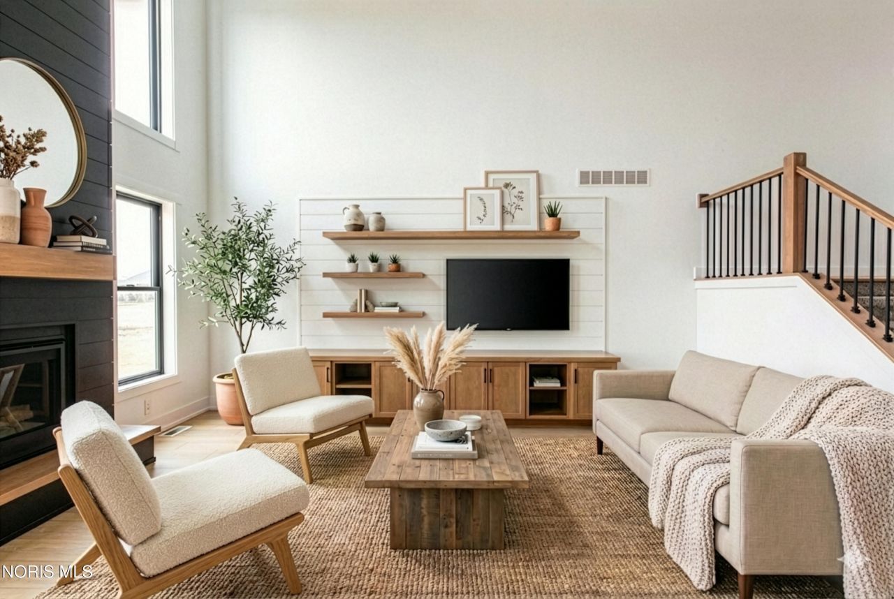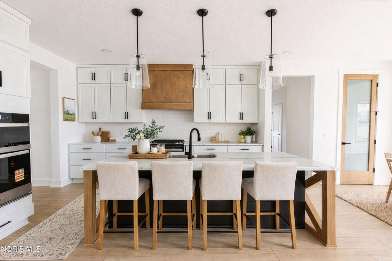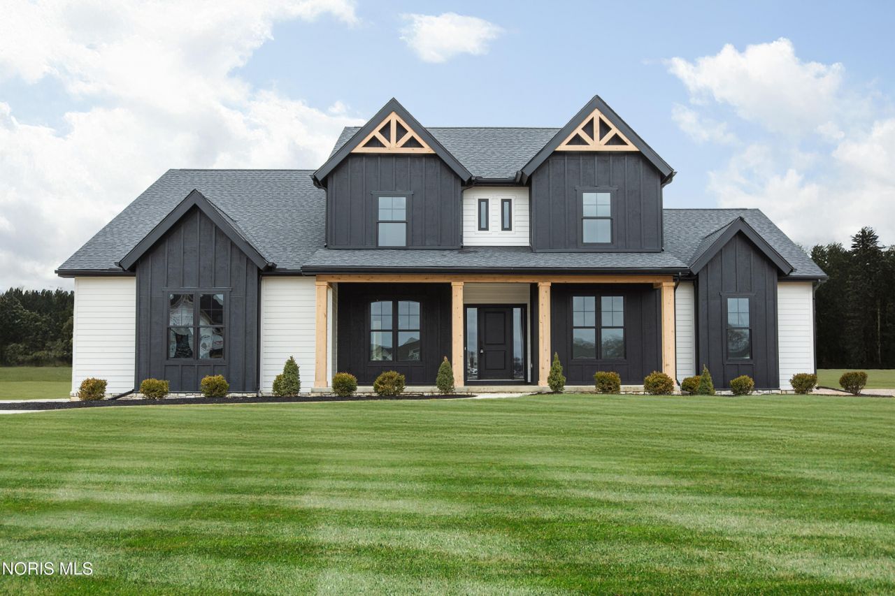 This just completed, move-in ready home was designed, interior-designed, and built by award-winning and high-end custom builder, Homes by Josh Doyle. This new construction custom home offers the highest level of structural quality and energy efficiency. Features include ½ closed cell spray foam exterior walls with fiberglass batt insulation & R-50 ceiling insulation (perfect for rising energy costs!), 4000 PSI concrete w/ fiber mesh foundation walls, premium-grade studs and OSB, and top-tier basement drainage and waterproofing systems. This quality is un-matched in the industry for spec homes. The layout is a perfected 'master class' custom home design specifically for this lot. NOT COOKIE CUTTER. Learn more about the quality on the How We Build page of their website. Contact directly to do a 3D walk-through of the home to visualize interior finishes and layout in a virtual meeting or in-person at HQ in Whitehouse, Ohio. Location / Lot This custom home is located in Sanctuary in the Woods in Perrysburg, OH. Sanctuary in the Woods has larger lots with distinctive high-end custom homes requiring side load garages, concrete drives & all natural surface exteriors! This is unique to many other surrounding subdivisions that have front load garages, blacktop drives & all vinyl exteriors. This private cul-de-sac lot has a very large back yard with a full yard irrigation system. Layout This home features an incredible 3,574 total sq.ft. layout featuring 9' first-floor ceilings, 2 story Foyer and Great Room ceilings and a highly desirable first-floor primary suite. The main floor boasts an open-concept design that flows seamlessly from the eat-in kitchen to a stunning two-story great room and a bright sunroom with a cathedral ceiling. A private den is located on the first floor, elegantly accessed by double custom stained barn doors, alongside a formal dining space. The primary suite is a true retreat with a massive walk-in closet, a custom tile shower, a double sink vanity, and a luxurious freestanding soaking tub. Upstairs, you will find 3 additional bedrooms, 2 full bathrooms, and a massive bonus room. The everyday entrance from the 3-car garage leads into a dedicated mudroom with custom built-in lockers, and half bath. The separate laundry room has an exterior entryway with a glass door to the exterior. This house also has a walk-in-pantry. Finishes EXTERIOR: Black Andersen windows, Therma-Tru exterior doors, and black Clopay long-panel garage doors. All natural surface painted siding with matching painted cedar board-and-batten accents on the front, contrasted by Linen siding on the sides/back. Stained cedar gable trusses, 12 stained cedar porch columns framing a 230 sq. ft. front porch, with stone accents around the house foundation, and a steep 12/12 pitch gable roof make this home look VERY custom. INTERIOR: Double Stacked cabinets in the kitchen to the ceiling! The quartz topped Island is black with custom built-wood sta
