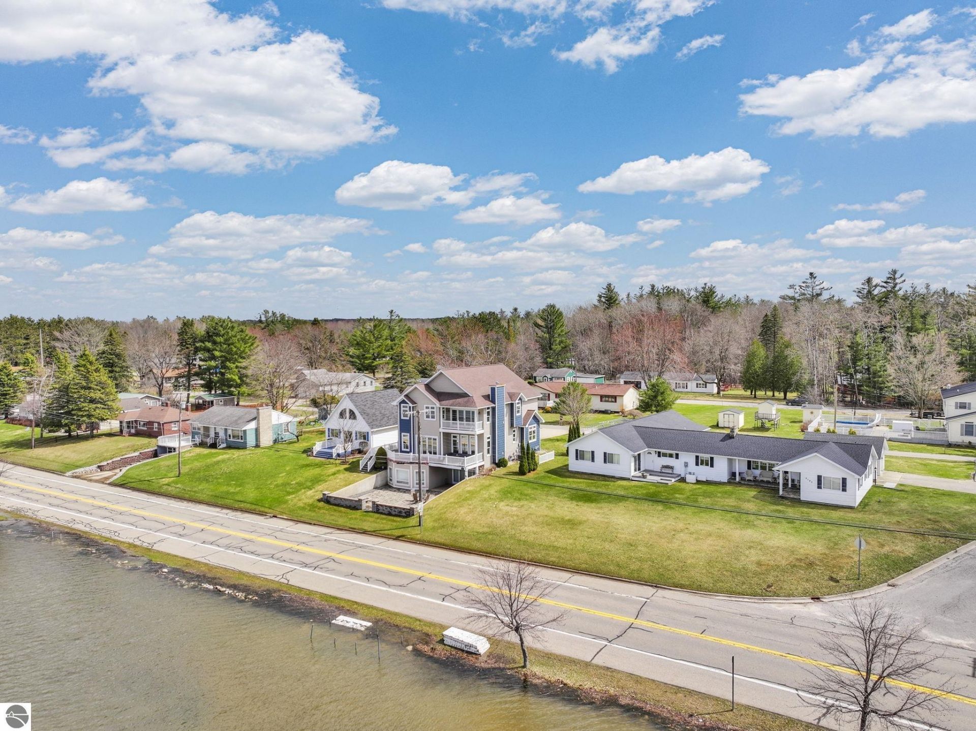 Welcome to 2121 Sunnyside Drive, located on the southern shore of Lake Cadillac, with a captivating three-story street presence. This executive-quality home has been tastefully and professionally updated over the last few years, offering a blend of warmth and modern features. As you enter the home from the main entrance, you experience a grandiose feeling with the 10â?? ceilings and the 8â?? doorways. The kitchen was designed for entertaining with the chef in mind. Outfitted with high-end Viking appliances, including a 48â?? six-burner, double-oven range and a 48â?? side-by-side refrigerator/freezer. Black quartz countertops accent the white hand-rubbed subway tile backsplash. From the island kitchen and the living room, you have a 180-degree panoramic view of the lake. Past the open staircase, you will discover the coziest den area known as the â??wine room,â?? featuring built-in custom cabinetry, 8â?? glass French pocket doors, and relaxing views of the lake. The entire main floor has modern high-end luxury vinyl plank flooring. Upstairs, you are greeted with 9â?? ceilings that showcase the grand foyer landing. The primary bedroom offers magnificent lake views through the double French doors and a private balcony. The completely renovated bathroom boasts an oversized walk-in tile shower with multiple heads, a modern soaking tub, and clean, crisp tile flooring. There are three more bedrooms, one of which is used as an office, and one that is oversized, with vaulted ceilings and an attached room plumbed for a private bath. You will find the laundry room and the guest bathroom on this floor. The lower walk-out level has a large partially finished family room area with endless possibilities and another full bath. From the lower lakeside level, you can enjoy the custom patio with integrated LED lighting and a built-in natural gas fire pit! From the main level, you can enjoy the elevated lake views from the stamped concrete and deck area, or retreat to the side deck area.