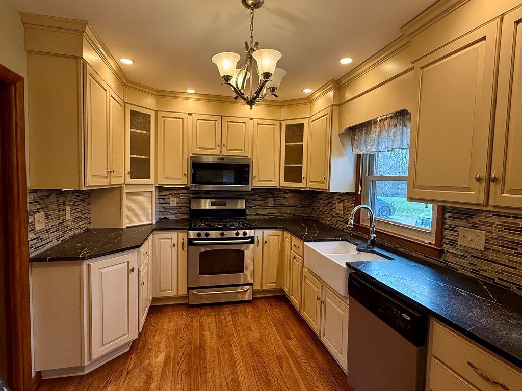 Charming and spacious story and a half home in excellent condition. Features include beautiful hardwood floors, a gorgeous kitchen with soapstone countertops, 4 bedrooms, 1 full and 1 half bath, plus an additional bathroom in the basement. Enjoy two fireplaces one in the living room and another in the basement rec room. The property also offers a 2-car attached garage and a 2-car detached garage, enclosed rear porch, and storage shed. Storage is not a problem as there are numerous closets throughout. This is a wonderful home with space, character, and great amenities.