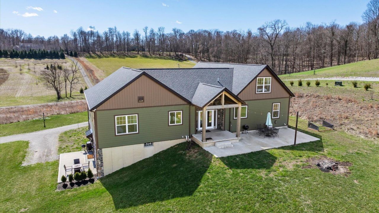 Set on 5 picturesque rolling acres in the Granville School District, this stunning custom-built home offers the perfect blend of modern comfort, thoughtful design, & rural charm. Built in 2021, the home lives like new & features three levels of finished living space, including a versatile walk-out lower level with a private apartment, making it ideal for multi-generational living, guests, or rental potential. The open, bright floor plan welcomes you with a spacious great room highlighted by a vaulted ceiling & beautiful views of the surrounding property. The custom kitchen is designed for both everyday living & entertaining, showcasing quality cabinetry, quartz countertops, an expansive island with eating bar, & a huge walk-in pantry. The kitchen flows seamlessly into the great room, creating a warm & inviting central gathering space. A cozy main-level study with French doors overlooks the scenic backyard, providing the perfect work-from-home setting. The expansive primary suite offers a tray ceiling, two closets, & a luxurious private bath featuring a soaking tub. The main level also includes an additional bedroom, full bath, & an oversized mudroom designed for everyday convenience. Upstairs you'll find two additional bedrooms, a loft area, & a full bath, offering flexible living space for family or guests. The walk-out lower level includes a complete one-bedroom apartment with kitchen & island, living room, full bath, laundry, & private patio--ideal for an in-law suite or guest quarters. There is also additional lower-level space with a large egress window that could easily be finished for even more living area. Equestrian or hobby farm enthusiasts will love the historic 30' x 40' barn, thoughtfully moved & reconstructed on the property. The barn features three stalls & water, along with two fenced pastures. This exceptional property offers modern construction, flexible living options, & peaceful country living just minutes from Granville.
