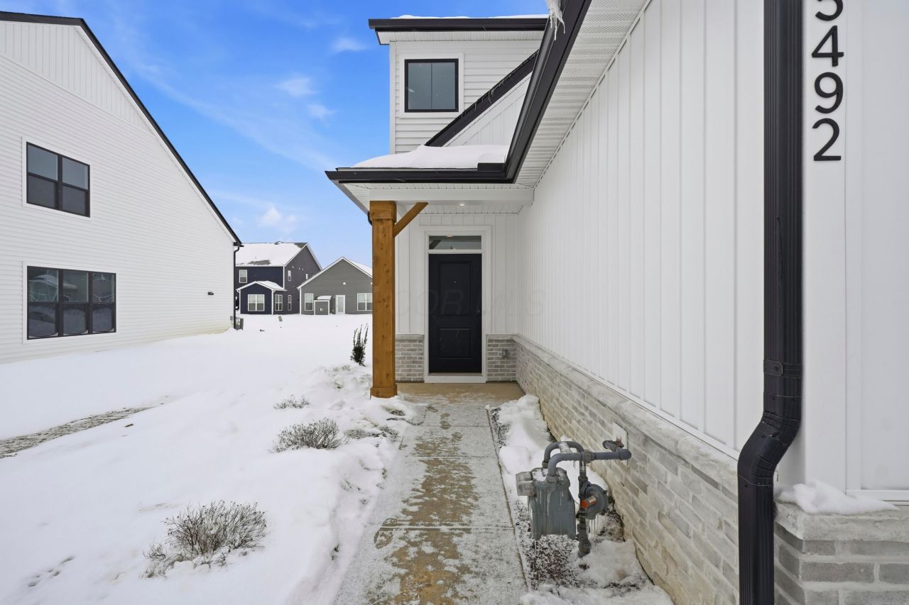 Welcome to 5492 Fawnsbury Court, a new-build end-unit townhome for sale in Powell!A striking farmhouse exterior with white siding, natural wood accents, and black-lined windows sets the tone for the modern design throughout the interior. Once inside, an open sightline into your grand family room awaits, and the staircase leading up to your second floor sits right at the front. In addition to the open-concept layout of the main floor, one of the other special design features in this home is the natural lighting streaming in through the window-lined walls, giving you a space you'll love coming home to each and every day. An L-shaped kitchen island sits right in the heart of this home, offering plenty of room for meal prep with an extra overhang for high-top seating. Plus, the kitchen overlooks both the family room and breakfast area, so you'll still be able to watch TV while getting dinner together that evening! Head out to your back patio through the sliding glass doors off the breakfast area???the perfect spot for an outdoor table, chairs, and potted plants. Your laundry closet sits at the top of the stairs near both bedrooms with a loft just across the way. Round the corner to find bedroom 2, the secondary full bathroom, and your luxurious owner's suite at the end of the hall. Your private retreat includes tray ceilings, 3 windows, a walk-in closet, and an en-suite bathroom! If you're searching for a new home in the area, this new-build townhome for sale at 5492 Fawnsbury Court may check each box!