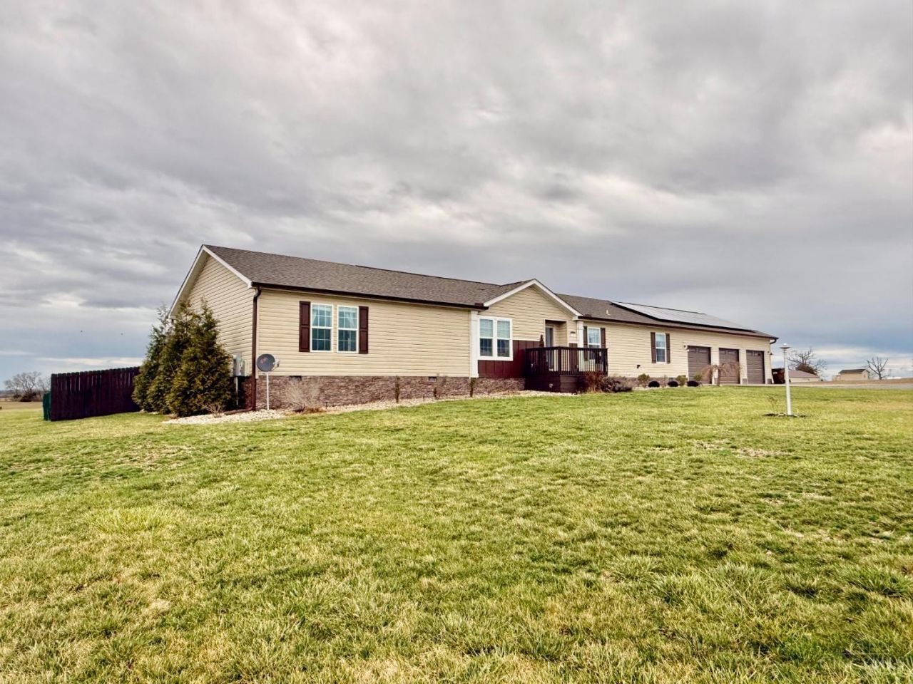 Country modern luxury with the ultimate party backyard! Located on 2.29 acres just minutes from town in Miami Trace School District, this beautiful home offers 3 bedrooms, a dedicated office/den, and 2 full bathrooms. Open floor plan perfect for everyday living and entertaining. Spacious kitchen with stainless steel appliances, large island with sink, abundant cabinetry, plus a recently added Amish-built pantry and additional cabinets for exceptional storage. Dining area with shiplap accent wall. Luxury vinyl plank flooring, crown molding, and faux wood blinds throughout. Living room with coffered ceilings. Split-bedroom layout offers privacy with a spacious owner's suite featuring double vanities, soaking tub, walk-in double-headed shower, separate toilet room, & large closet. Family room w/stone fireplace and gas ventless logs.Incredible backyard with in-ground pool, deck, patio, fenced yard, and raised Amish-built garden beds. Solar panels, water soften