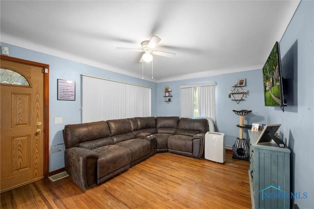 Welcome to this well cared home with great outdoor space! Enjoy hardwood floors in the main floor living areas and bedrooms, while kitchen and enclosed back porch feature vinyl flooring. Additional highlights include central air conditioning, and full basement with dry bar, rec room area, and storage! The spacious back enclosed porch leads to an outdoor patio, ideal for entertaining or relaxation. Backyard is fully fenced with 2 car garage for ample parking space, and shed for additional storage. Schedule your tour today to see all it has to offer!