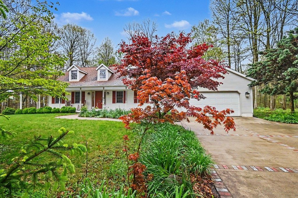This beautiful home is tucked in a gorgeous wooded natural setting of 5.01 Acres. Wonderful bright applianced kitchen with corian countertops and adjacent to a stunning family room with woodburning fireplace. Formal dining. Nice quaint living room. Convenient 1st floor laundry. Beautiful 1st floor primary suite with private bath and walk in closet. Two spacious upstairs bedrooms and a full bath. A special bonus of 1300 square feet in the finished lower level; large rec room with wet bar, huge 4th bedroom or craft room, and full bath. Enjoy the serenity on the spectacular 16.5 x 32.5 open deck surrounded by beautiful views. Numerous updates in the home. Roof 2015. Wonderful pole barn 30 x 18 with concrete floor new in 2023. Convenient location with quick access to Route 30 and the interstates.