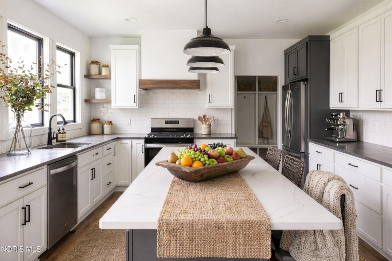 This just completed, move-in ready home was designed, interior-designed, and built by award-winning and high-end custom builder, Homes by Josh Doyle. This new construction custom home offers the highest level of structural quality and energy efficiency. Features include ½ closed cell spray foam exterior walls with fiberglass batt insulation & R-50 ceiling insulation (perfect for rising energy costs!), 4000 PSI concrete w/ fiber mesh foundation walls, premium-grade studs and OSB, and top-tier basement drainage and waterproofing systems. This quality is un-matched in the industry for spec homes. The layout is a perfected 'master class' custom home design specifically for this lot. NOT COOKIE CUTTER. Learn more about the quality on the How We Build page of their website. Contact directly to do a 3D walk-through of the home to visualize interior finishes and layout in a virtual meeting or in-person at HQ in Whitehouse, Ohio. Location / Lot This residence is situated in the Winterbourne Station subdivision within the highly sought-after Monclova Township (offering the benefit of no income tax). The very deep backyard features a split-rail fence. Homes by Josh Doyle will be designing and constructing distinctive custom homes on the remaining 20+ lots, accessible via a private entrance to this subdivision. Full yard irrigation is included with this house. Layout This home has tall ceilings on the first floor with a two story foyer. 4 Bedrooms upstairs & large laundry with a 7' full wall of upper & lower cabinets with a deep undermount sink. The primary suite is HUGE! It has a large walk-in-closet & a 5' tile shower and double sink vanity. A private office on the first floor with double glass doors. A large sunroom off the back with high end window arrangements and sliding glass door to concrete patio. The kitchen has a sink that sits on the back wall with 3 windows over it, and a large 8' island that seats 5. The mud room has custom built cubbies & a large closet & ½ bath as you enter home from garage to kitchen. The 2 Car garage is oversized, fully drywalled and insulated. Finishes EXTERIOR: Black Anderson windows with vertical grids in the front. Thermatru ext. Doors w/ deadbolts. Double Steel Clopay garage door w/ ½ HP openers and wireless keypad. Decorative Trusses in gable ends with B&B vertical siding accents. 12/12 pitch roof gables. makes this home look VERY custom. INTERIOR: High/low cabinets with crown, a custom Hood & floating shelves in kitchen. Tile backsplash, custom cabinet handles, and quartz counters make this kitchen elegant. Large undermount sinks in the kitchen and laundry room. Black Delta faucets, shower trims, and matching bath hardware. Modern Farmhouse style fixtures, handpicked by professional interior designers. Wide plank, scratch & water-resistant solid surface floors throughout including the great room. 1x6 baseboards and 1x4 trim around all windows and doors on the insid